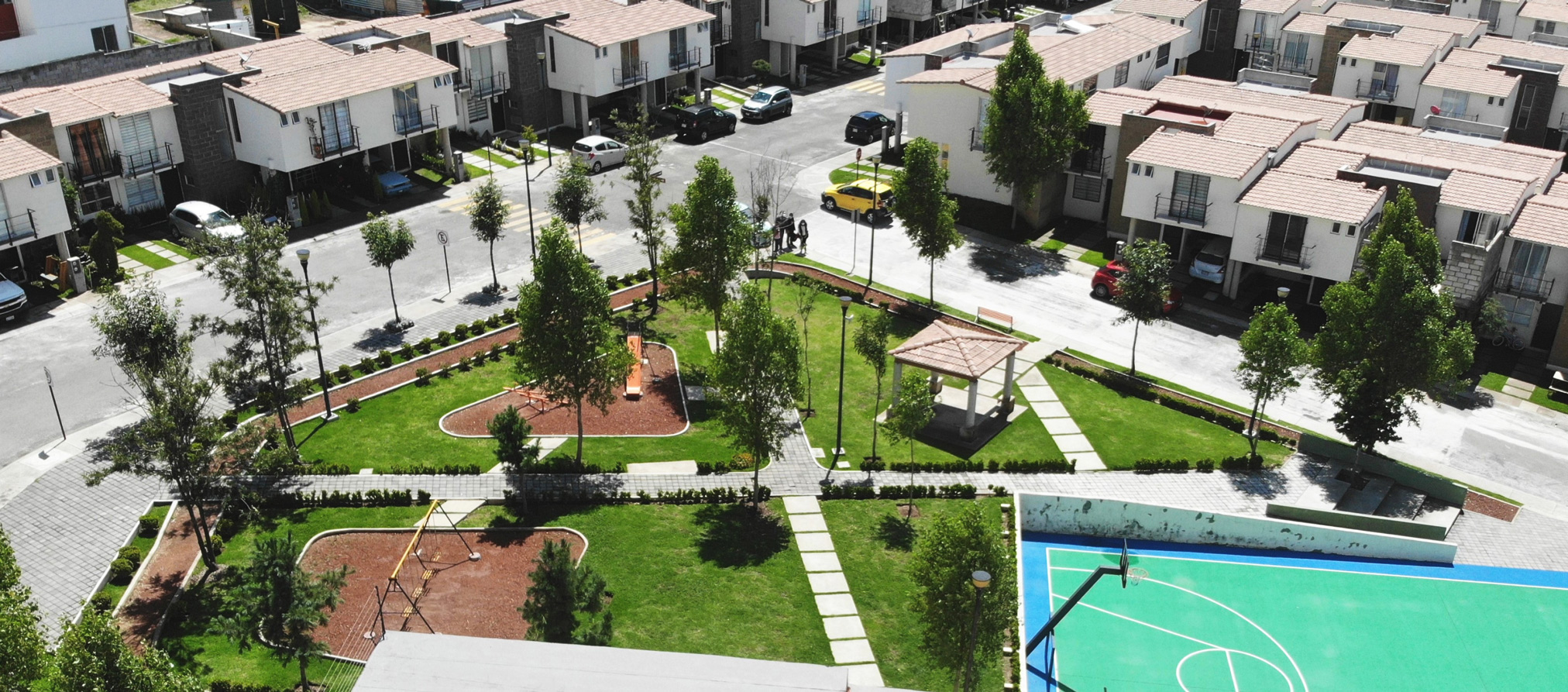 Conjunto habitacional con entornos naturales que ofrecen a las familias la oportunidad de vivir en un ambiente más verde y saludable, rodeado de áreas naturales, paisajes hermosos y una mayor presencia de espacios al aire libre.